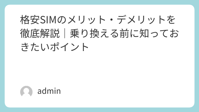 格安SIMのデータ容量はどれくらい必要?スマホ利用量の目安をわかりやすく解説格安SIMを選ぶ際に多くの人が悩むのが「データ容量」です。格安SIMでは3GB、10GB、20GBなどさまざまなプランが用意されており、自分に合った容量を選ばなけれ...
